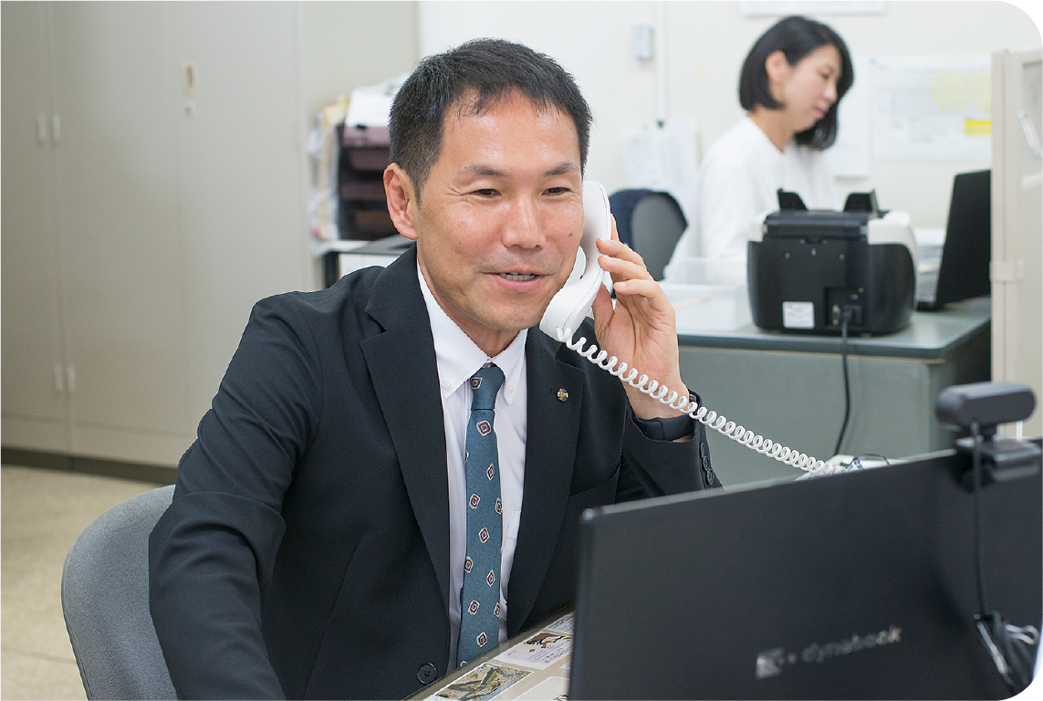 相場には良い時も悪い時もありますが、良い結果につながった際にお客様に喜んでいただけることが、何よりのやりがいです。長く続ける中で、三代にわたってお付き合いいただけるご家族もあり、地域密着ならではの強みを実感しています。営業を経て、現在は支店長として社員のサポートや業務管理、コンプライアンスチェックなどを主に担っていますが、今も変わらずお客様とのつながりを大切にしています。